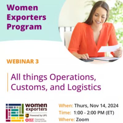 This is the third of five webinars that Startup Canada will host as part of the UPS Women Exporters Program. These webinars are designed for early stage women entrepreneurs and will walk through the tools and resources to get your business export ready.